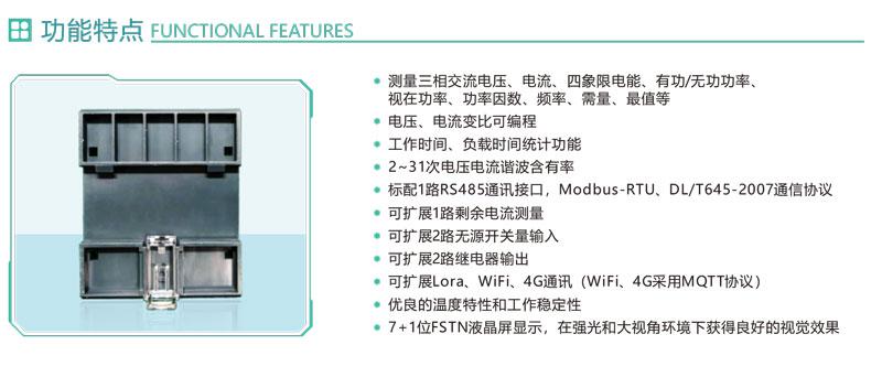 1.測量三相交流電壓、電流、四象限電能、有功/無功功率、