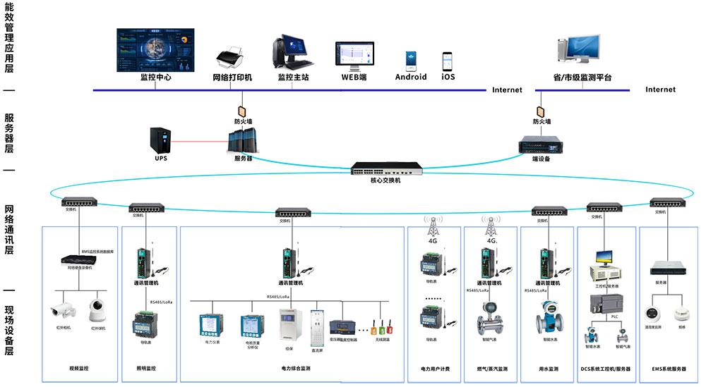 T@Energy智慧能源管理系統對能源使用情況,對設備運行實行集中監測、管理和分散控制。以區域數據為基礎,結合“互聯網+大數據”的有效利用,自由組合成多個“能耗單元”,通過智慧能源綜合管理平臺的實現能碳管理、能耗分析、單耗指標、專家評估、智能預測等。主要側重于對水、電、氣、暖的用能分析。大屏展示: