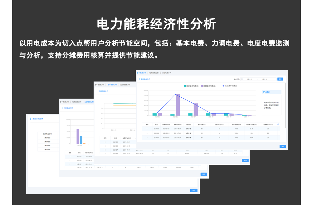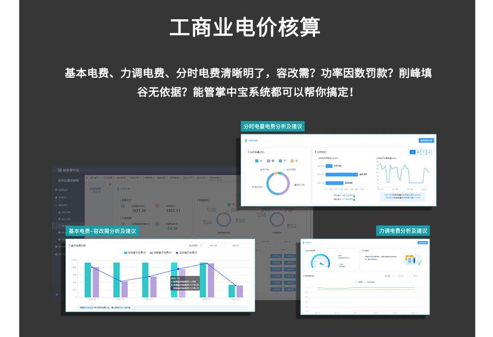 電費優化管理系統,能夠解決采用兩部制電價的大工業用電企業容需電費分析(基本電費)、分時電費分析(電度電費)、力調電費分析等電費優化問題,提供度電成本核算、降費潛力分析、優化建議、變損分析、負荷特性分析等多維度分析方案,并自動生成月度電費優化報告,讓大工業用戶的電費管理更加科學合理!