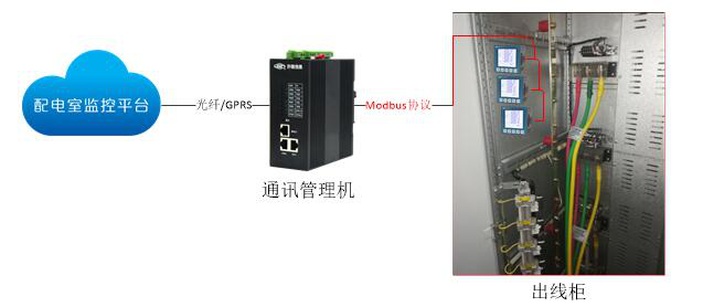 通過變壓器溫控器采集變壓器三相鐵芯的溫度,及啟停變壓器的風機,有油位傳感的可以檢測油位,對于調容調壓配電變壓器,可以實現調容調壓的操作和檢測;變壓器溫控器通過Modbus通訊協議將溫度信號傳至通訊管理機。