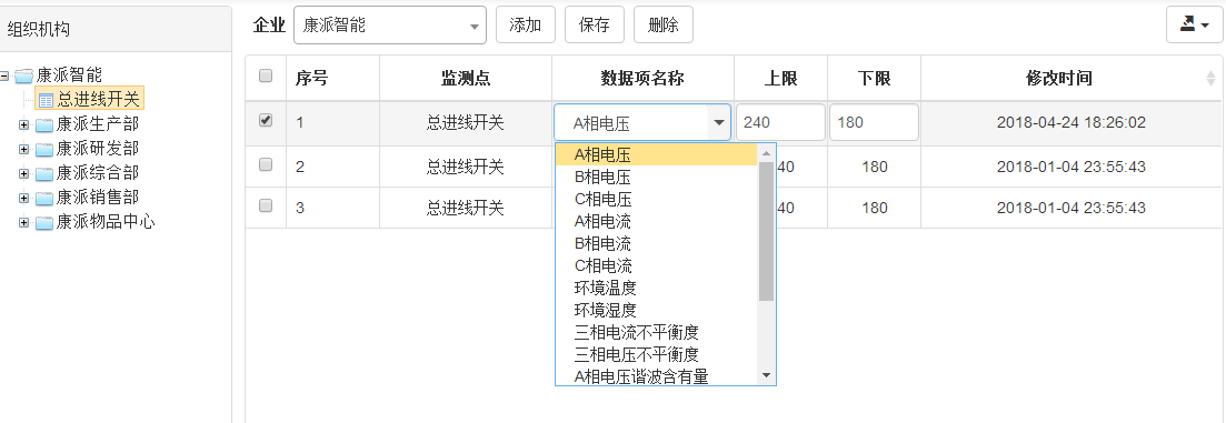 電能管理系統設備越限設置功能展示