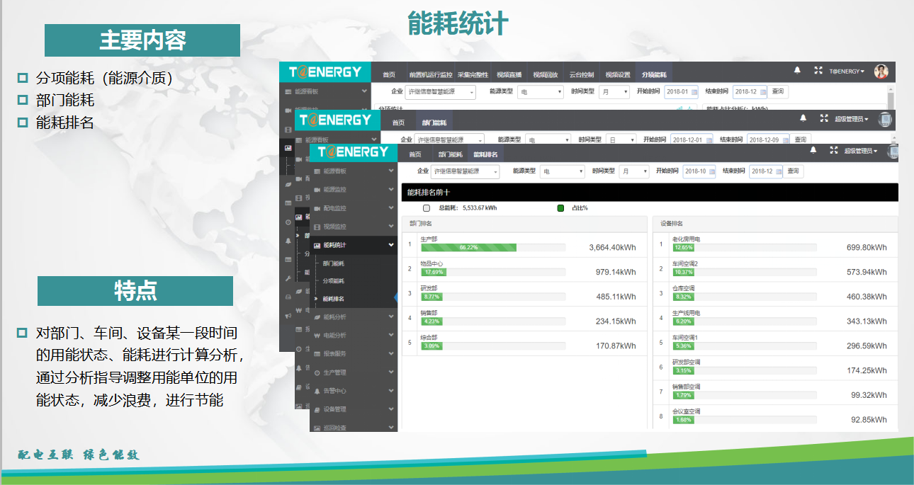能耗統(tǒng)計(jì)主要是實(shí)現(xiàn)對(duì)能耗的統(tǒng)計(jì)和排名,例如對(duì)部門、車間、設(shè)備某一段時(shí)間的用能狀態(tài)、能耗進(jìn)行計(jì)算分析,通過分析指導(dǎo)調(diào)整用能單位的用能狀態(tài),減少浪費(fèi),進(jìn)行節(jié)能。