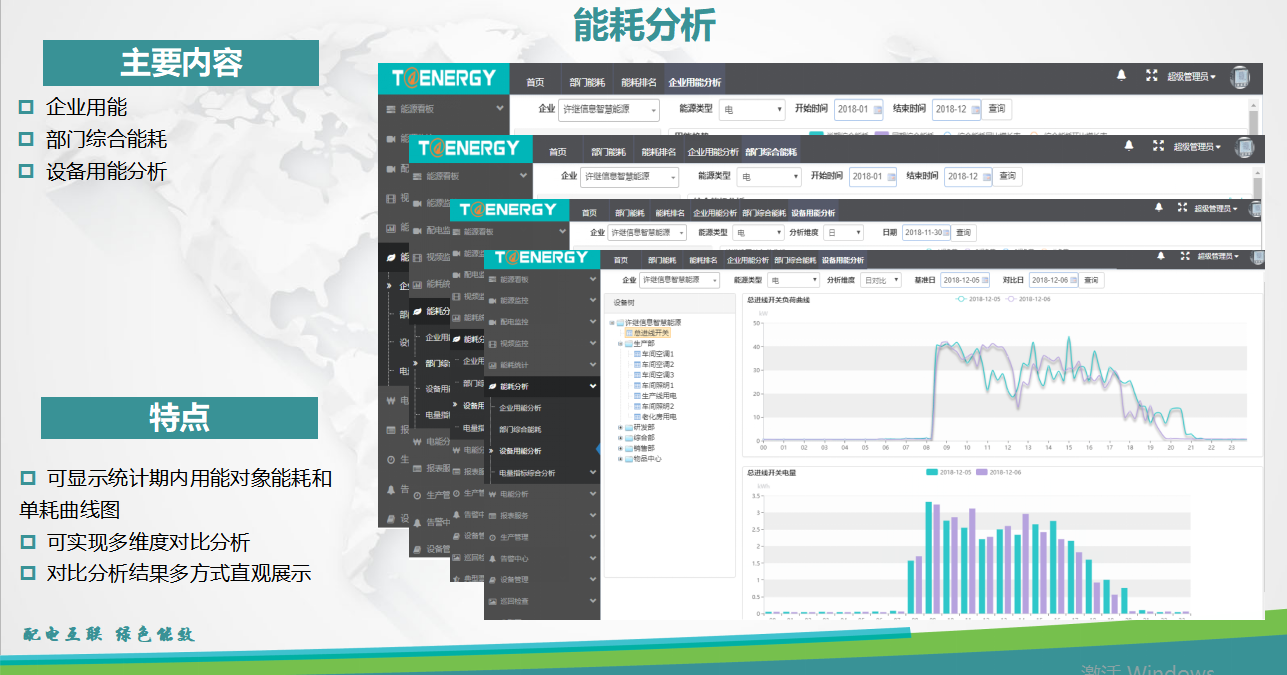 能源管理系統(tǒng)能耗分析界面區(qū)別于能耗統(tǒng)計(jì),主要是實(shí)現(xiàn)能耗的分析,通過多維度、多方式展現(xiàn)用能分析情況,讓用戶快速掌握用能趨勢及設(shè)備變化情況。