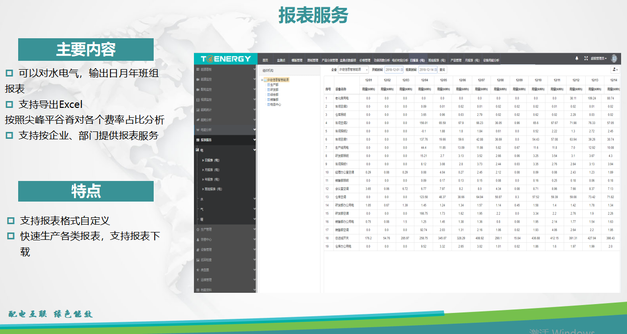 報(bào)表服務(wù)通過對(duì)水、電、氣綜合能源的監(jiān)控與記錄,解決人工抄錄造成的跑冒滴漏等現(xiàn)象。