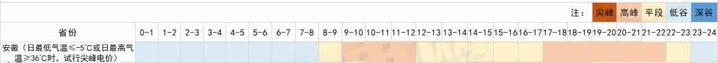 2、安徽省一般工商業(yè)及大工業(yè)用戶分時電價對應(yīng)的尖峰平谷時段分布