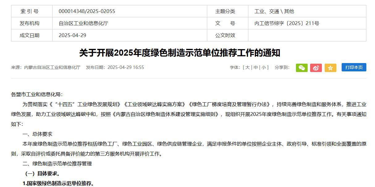 加快推進(jìn)2025年內(nèi)蒙古省綠色工廠申報(bào)指南