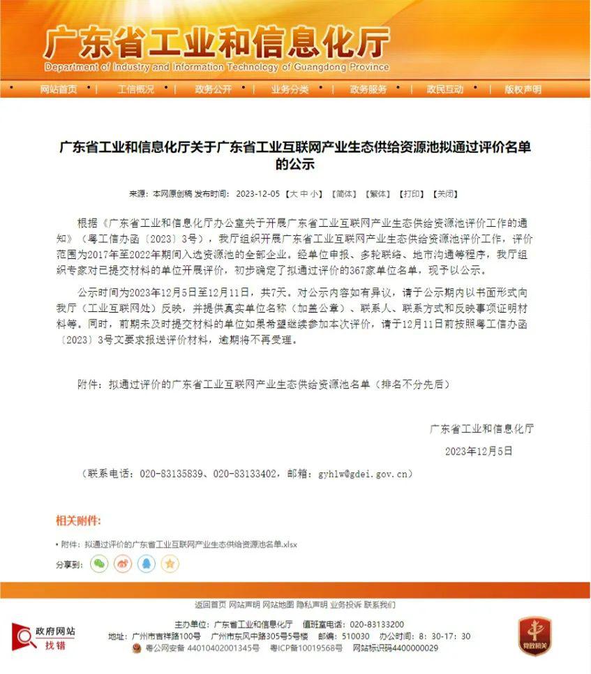 近日,廣東省工業和信息化廳公示了《2023年廣東省工業互聯網產業生態供給資源池入池評審名單》,河南康派智能技術有限公司成功入選,成為廣東省工業互聯網產業生態供給資源池企業。