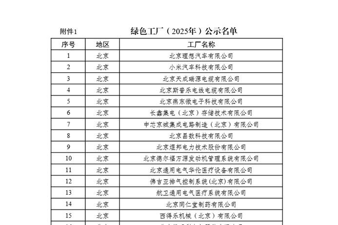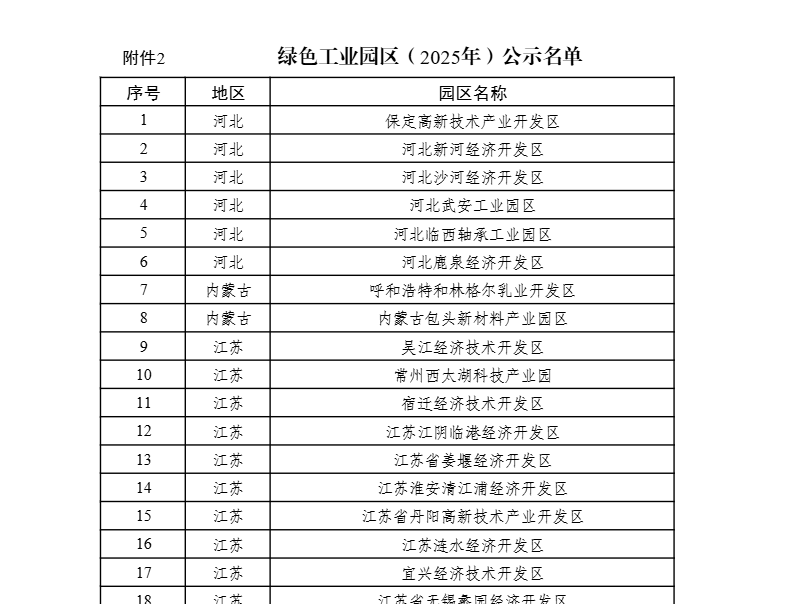 綠色工廠、綠色工業(yè)園區(qū)(2025年)名單公示
