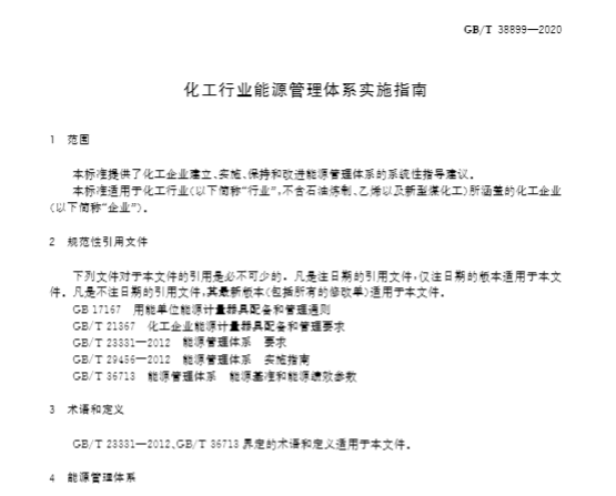 化工行業是一個高耗能行業,也是我國能源消耗的重點行業,其能耗總量占全國個工業總能耗的32%左右,化工行業覆蓋的企業類型頗廣,工藝流程迥異,且生產副產品種類繁多,普遍存在管理體系邊界不清晰、能源績效識別不全面等問題,本標準旨在引導化工企業合理建立能源管理體系,提高其能源管理績效,包括提高能源效率,降低能源消耗。