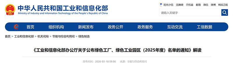 《工業和信息化部辦公廳關于公布綠色工廠、綠色工業園區(2025年度)名單的通知》解讀